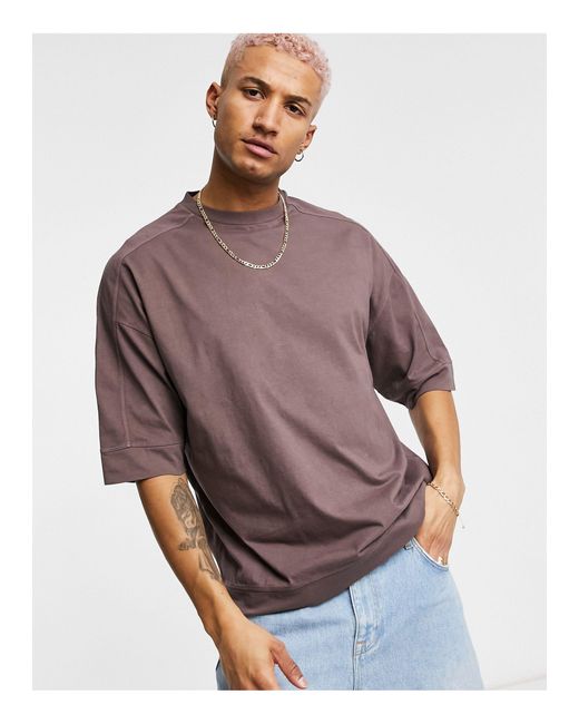 Asos Oversized T Shirt With Chunky Hem And Seam Detail In Brown For Men Lyst