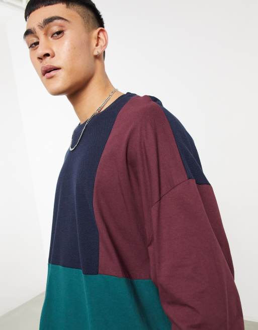 Asos Design Oversized Long Sleeve T Shirt In Colour Block Asos
